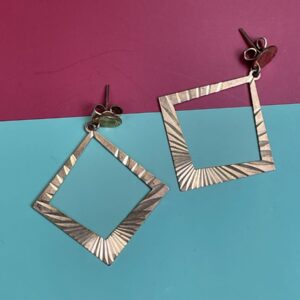 LASER ETCHED & FACETED BRASS GEOMETRIC POST EARRINGS