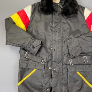 1980S COLOR BLOCK SLEEVE PANELS BELTED NYLON FUR COLLAR PARKA SKI WEAR JACKET