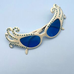 AMAZING! GLITTER EMBELLISHED DRAMATIC SIRL FRAME SUNGLASSES BLUE LENSES