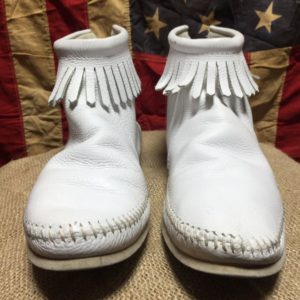 LEATHER MINNETONKA W/ CLASSIC FRINGE & BACK ZIP-UP MOCCASIN BOOTIE9Read more