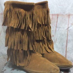 TALL SUEDE MINNETONKA TRIPLE FRINGE MOCCASIN BOOTS