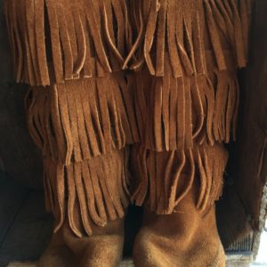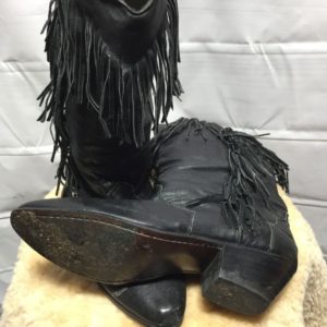 LEATHER BOOTS W/ FRINGE DOWN BACK & POINTED TOE