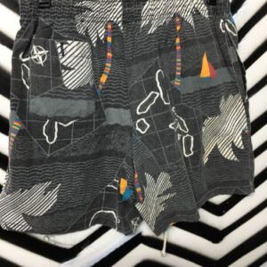 1990s SWIM TRUNKS W/POCKETS – MAP PRINT DESIGN