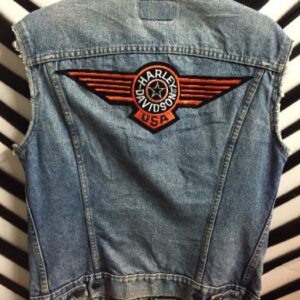 HARLEY DAVIDSON DENIM SHIRT – SLEEVELESS W/HARLEY PATCHES