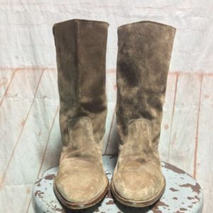 SUEDE WOMEN’S BOOTS MID CALF W/ CHUNKY WOOD HEEL