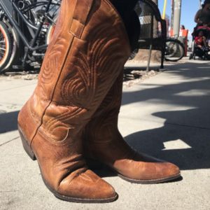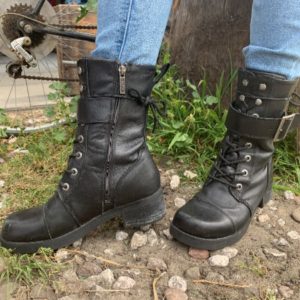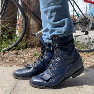 BOOTS – RECYCLED – ADDED DENIM & PRINT CUFFS W/BELTS – ONE OF A KIND