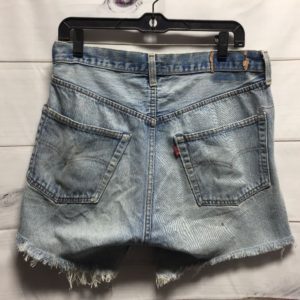 SIZE 28 DARK DENIM HIGH WAIST SHORTS BOOTY CUT SLIGHT FRAY AND DISTRESS