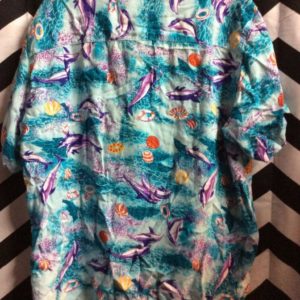GUESS HAWAIIAN SHIRT W/ DOLPHIN & BEACHBALL PATTERN