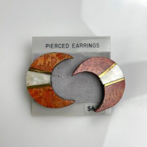 DEADSTOCK CARVED WOOD, MOP & BRASS INLAY CRESCENT POST EARRINGS