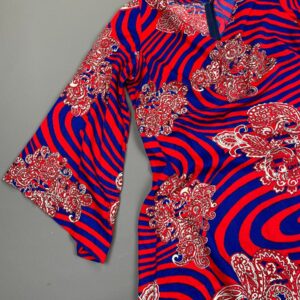 1960S PSYCHEDELIC PAISLEY PRINT HEMMED MINI DRESS W/ BELL SLEEVES