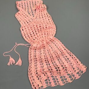 AMAZING 1960S PASTEL PINK KNIT CROCHET MINI DRESS