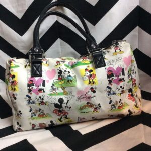 MICKEY & MINNIE PURSE W/ SHORT STRAPS & 2 OUTSIDE POCKETS