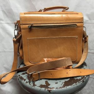 HAND MADE GENUINE LEATHER MINI MESSENGER TOTE WITH BUCKLE STRAP – AS IS