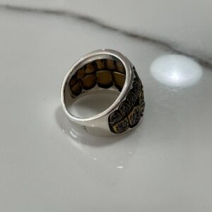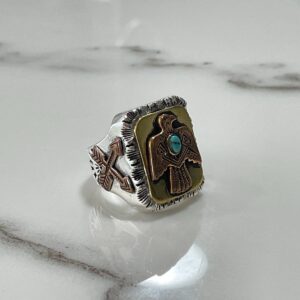 STUNNING! 2-TONED BRASS & SILVER PLATED THUNDERBIRD RING W/ POLISHED TURQUOISE STONE