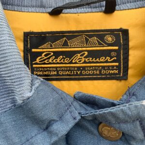 RETRO 2-TONE INSULATED GOOSE DOWN PUFFER JACKET BRASS SNAP BUTTONS CORDUROY COLLAR