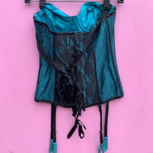 STRAPLESS CORSET FLORAL LACE FISHNET DETAIL BODICE LACE UP BACK GARTER STRAPS