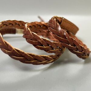SKINNY BROWN WOVEN LEATHER BELT BRASS BUCKLE