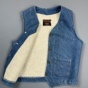 RETRO 1970S SHERPA LINED SNAP BUTTON DENIM VEST