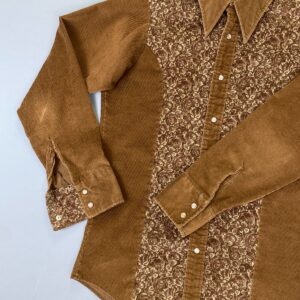 RETRO 2-TONE INSULATED GOOSE DOWN PUFFER JACKET BRASS SNAP BUTTONS CORDUROY COLLAR