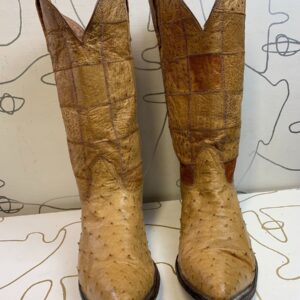 LEATHER COWBOY BOOTS W/ OSTRICH HEELS/TOES & PULLS