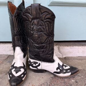 *AS-IS* AMAZING BLACK AND WHITE DESIGN LEATHER COWBOY BOOTS