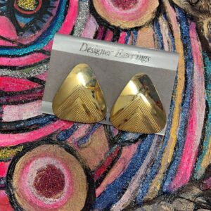 OVERSIZED GOLD TRIANGLE STUD EARRINGS ETCHED CHEVRON DESIGN *DEADSTOCK