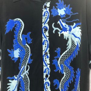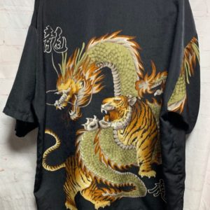 1970S JAPANESE INSPIRED DRAGON PRINT HAWAIIAN SHIRT FRONT WELT POCKETS AS-IS