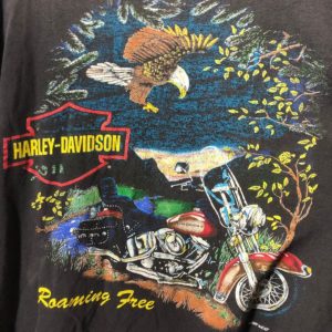 VINTAGE HARLEY DAVIDSON POCKET DISTRESSED TSHIRT ROAMING FREE MOTORCYCLE AND EAGLE GRAPHIC