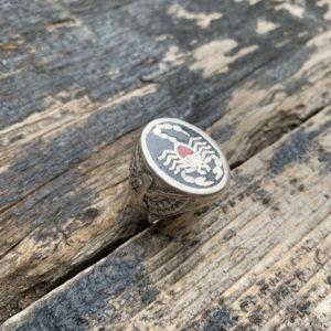 CHUNKY SCORPION CRUSHED CORAL & ONYX MOTORCYCLE BIKER RING