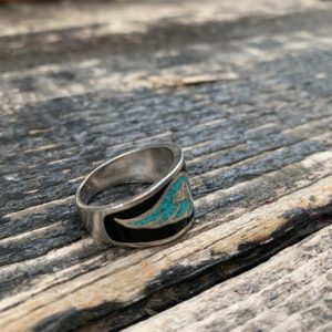 CRUSHED TURQUOISE & ONYX EAGLE ON PERCH MOTORCYCLE BIKER RING