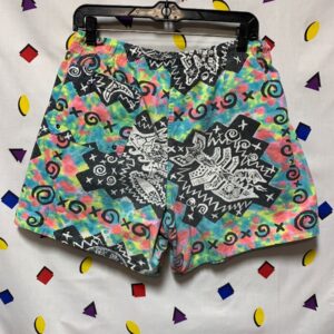 RETRO 1990S OCEAN PACIFIC NEON LOGO PATCH TIE DYE PRINT BOARD SHORTS