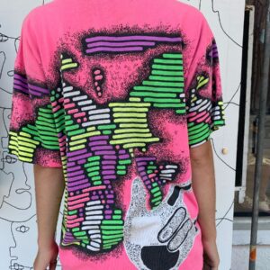 AS IS – NEON ABSTRACT STRIPED & DOTTED HAND SIGN PRINT T-SHIRT