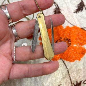BEAUTIFULLY ENGRAVED VINTAGE POLISHED BRASS POCKET KNIFE PENDANT NECKLACE, BRASS SNAKE CHAIN