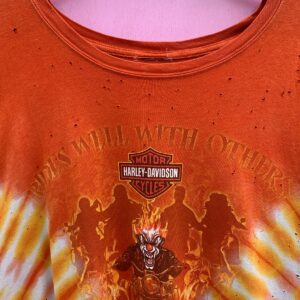AS-IS DISTRESSED HARLEY DAVIDSON TIE-DYE T-SHIRT W/ FLAMING CLOWN BIKER SAVANA GEORGIA
