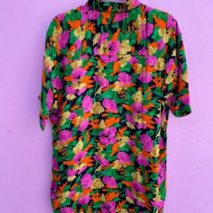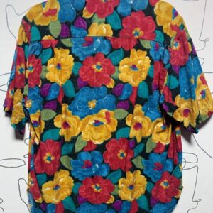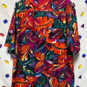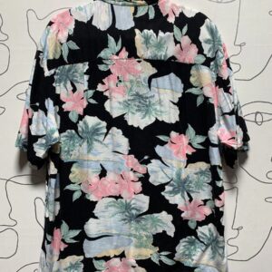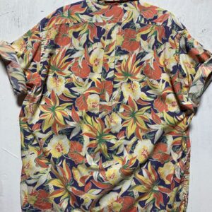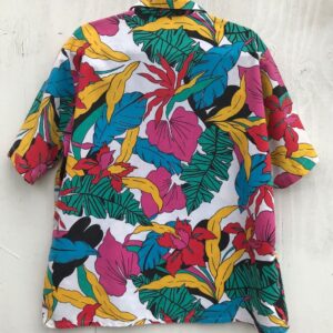 1990S ALLOVER TROPICAL FLORAL PRINT POLY SHORT SLEEVE BUTTON UP SHIRT