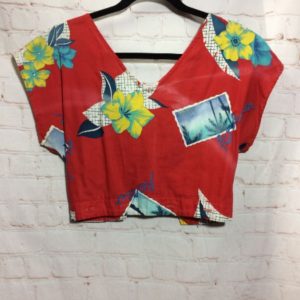 HAWAIIAN STYLE FLORAL PATTERN TIE-UP CROP-TOP SHIRT