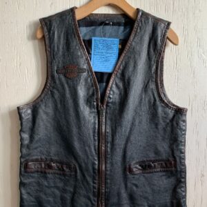 HARLEY DAVIDSON WINGED BACK LOGO TWO-TONE ZIP-UP LEATHER VEST