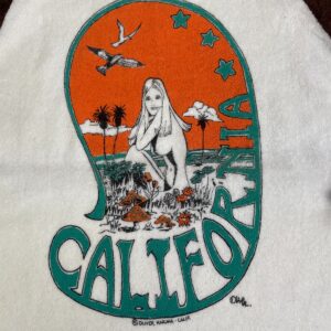 EARLY Y2K DEADSTOCK! CALIFORNIA MUSHROOM GIRL TERRY CLOTH RAGLAN TEE