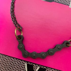 REPURPOSED BIKE CHAIN NECKLACE ON HOOPS TEXTURED CURB CHAIN