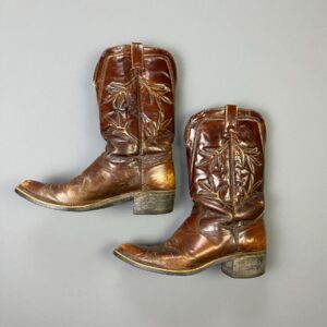 SHINY POLISHED LEATHER EMBOSSED DESIGN COWBOY BOOTS