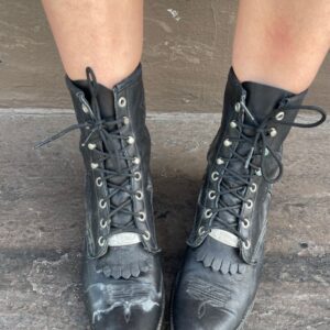 LEATHER LACE-UP EMBROIDERED DESIGN ROPER BOOTS