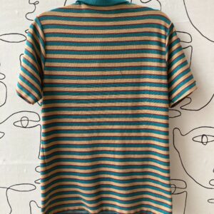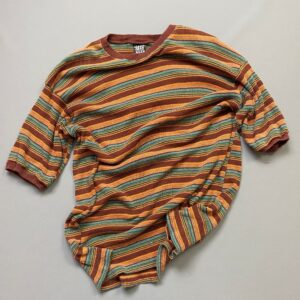 HORIZONTAL STRIPED RETRO 1970’S STYLE T-SHIRT W/ RINGED NECK & ROLLED/TACKED SLEEVES