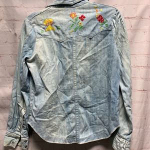 1980S OVERSIZED ACID WASH DENIM SHIRT WITH CHECKERED PATCHWORK AND SNAPS