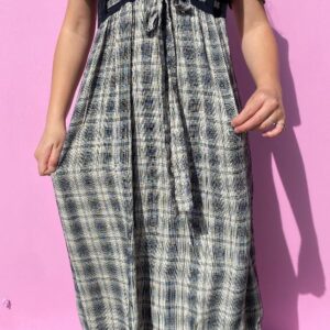 PLAID LONG WAIST-TIE SHORT SLEEVE DRESS -THERMAL ACCENT