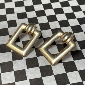 1980S DEADSTOCK FUN PLASTIC LARGE ROUND GEOMETRIC EARRINGS WITH ELEVATED SQUARE