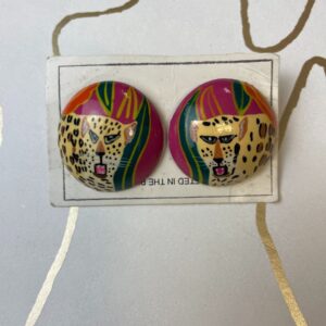 1980S LEOPARD HAND PAINTED POST EARRINGS