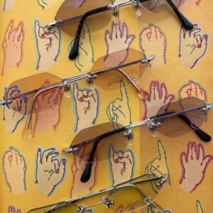 AMAZING GEOMETRIC GOLD FRAME WITH ORNATE STAMPINGS CUSTOM ORANGE DIPPED LENSES