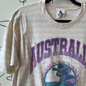 RAD 1980S AUSTRALIA UNIVERSITY SURFING KOALA PASTEL GRAPHIC FADED STRIPES BOXY SINGLE STITCH T-SHIRT