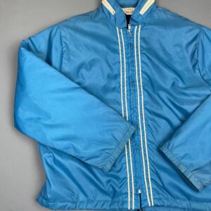 *AS-IS* 1970S FUZZY SHERPA LINED NYLON RACING JACKET FRONT PIPED STRIPES