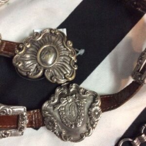1993 BRIGHTON BELT – LEATHER – SILVER – CONCHOS & CHAIN DESIGN